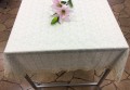 ☆上品なレースにかわいいバラ柄を施しております♪ ☆ダイニングテーブルにお気に入りのテーブルクロスをかけて、 家族や友達と過ごす時間を、もっと楽しくアレンジして♪♪ 商品番号:323-11 材質:ポリエステル100% サイズ:150/230CM