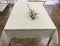 ☆上品なレースにかわいいバラ柄を施しております♪ ☆ダイニングテーブルにお気に入りのテーブルクロスをかけて、 家族や友達と過ごす時間を、もっと楽しくアレンジして♪♪ 商品番号:366-07 材質:ポリエステル100% サイズ:135/180CM