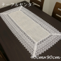 *商品番号* 397-05 *商品説明* 麻入り生地をチェックとバラ刺しゅうの幅広レースで縁取ったテーブルクロスです。麻の感じが涼し気で、夏にピッタリな一品です!また、テーブルセンター以外としてでも、サイドボードに置いたり、テーブルセンターとして使ったりなど、いろいろな使い方ができます◎ *材質* レース部分:ポリエステル 生地部分:ポリエステル、麻 *サイズ* 40cm×90cm