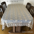 アンティークゴールドのバラ刺繍を施した生地にバラのレースを付けたゴージャスなテーブルクロスです♪