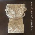 アンティークゴールドのバラ刺繍を施した生地にバラのレースを付けた上品なトイレットペーパーホルダーです♪